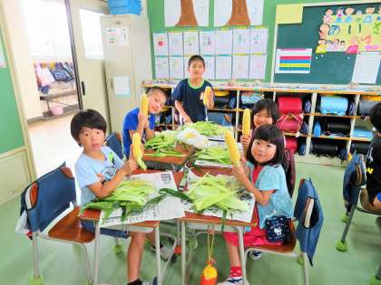 「皮が11枚あった!」「3本も皮むきしました!」などと、楽しそうに取り組んでいました。