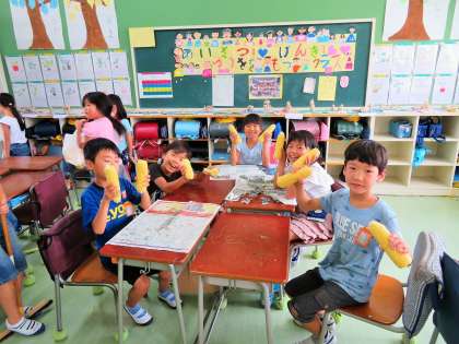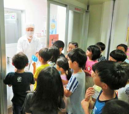 給食の時間に、子どもたちは嬉しそうに季節の味を一粒一粒味わっていただきました。