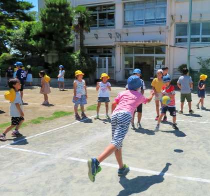 班員の確認をして、遊びのスタートです。「だるまさんが転んだ!」「ドッジボール」で遊んでいる班が多くありました。ドッジボールで、高学年の子どもたちが手加減をしながら投げている姿にやさしさを感じました。