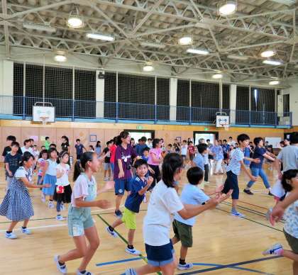 今日は、盆踊りの練習に6名の地域の方々に来ていただき「砧っ子音頭」「炭坑節」「東京音頭」の踊り方を教えていただきました。地域の方々と、上下学年と、同級生と楽しく踊りの練習をすることができました。