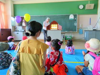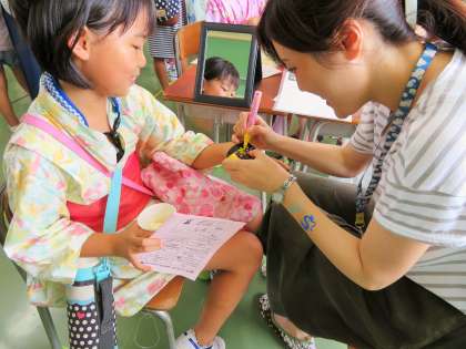 フェイスペインティング、布で作るぞうり、紙しばいのコーナーです。
