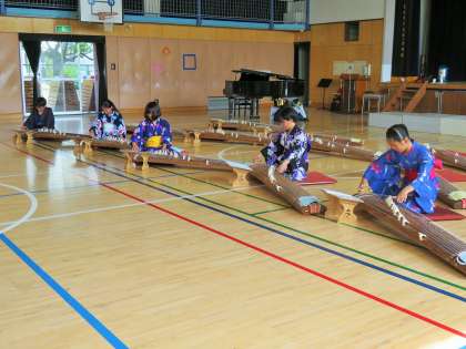 体育館では、学び舎である、砧南中学校の筝曲部、砧中学校の吹奏楽部の演奏です。