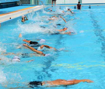 今日は夏季水泳教室2日目です。猛暑の影響で、高学年、中学年まで実施ができました。今日もプールには10名以上の先生が指導に入っています。特に3・4年生は、昨日入れなかったので嬉しそうでした。