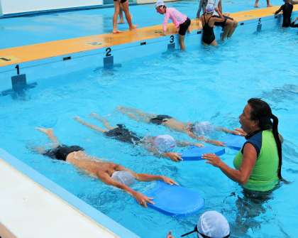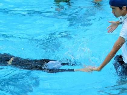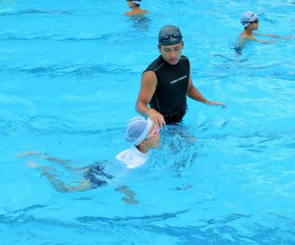 「浮く」という感覚を大切に、泳力別に基礎からしっかりと指導しています。