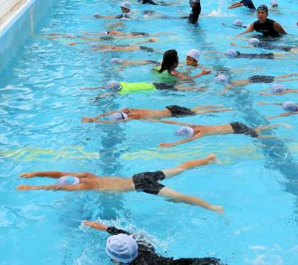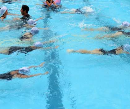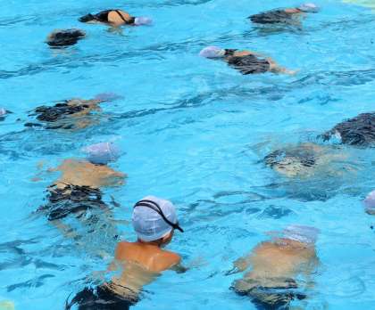 水遊びを通して、もぐったり、浮いたりしています。そのことが、泳ぐことの大切な基盤になります。子どもたちには、どんどん水を好きになってもらいたいです。