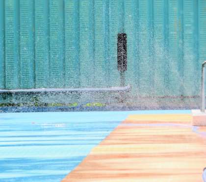 熱中症対策として、こまめな水分補給と休憩、冷たいシャワー、プールサイドのミストで対応をしています。