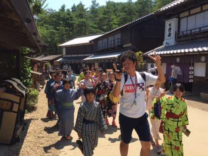 江戸時代を再現したテーマパークです。先ずは、江戸人になりきるために変身をして入場です。