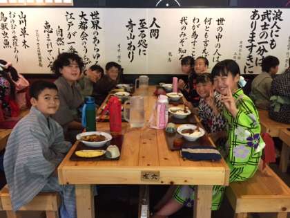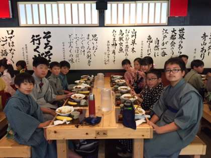 日光江戸村のお狩場食事処で「かりーらいす」と「バナナ」の昼食を食べました。食欲旺盛で元気です。