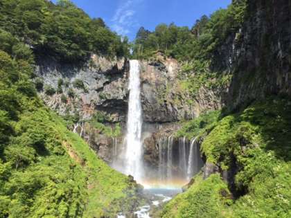 華厳の滝に到着しました。落差97mの迫力ある滝を見ることができました。快晴でこれだけ水量豊富な滝を見られることはなかなかありません。