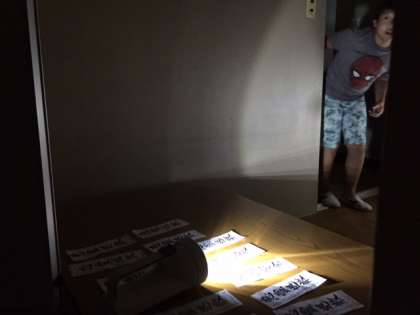 子どもたちは肝試しをして、日光最後の夜を楽しみました。真っ暗な中を3〜4人一組で歩いて、お札を取りに行きました。楽しんだり、怖がったりしていました。