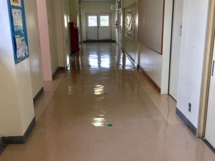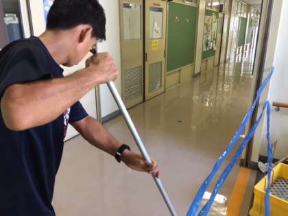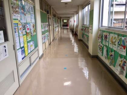 夏休み中に主事さんが、学校中の廊下を洗浄しワックスをかけています。新学期には、ピカピカになった廊下を気持ちよく歩くことができます。