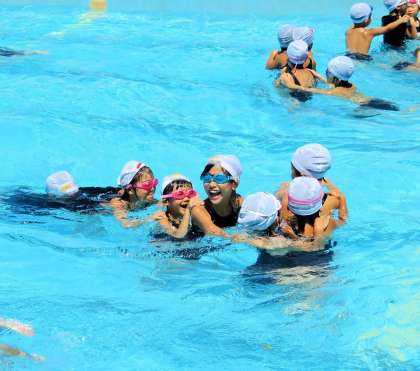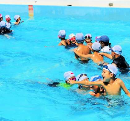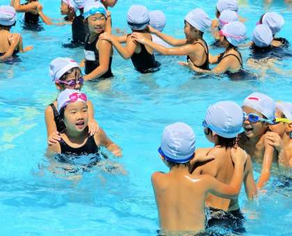 水の中で「ジャンケン列車」をして、とっても楽しそうです!