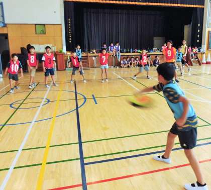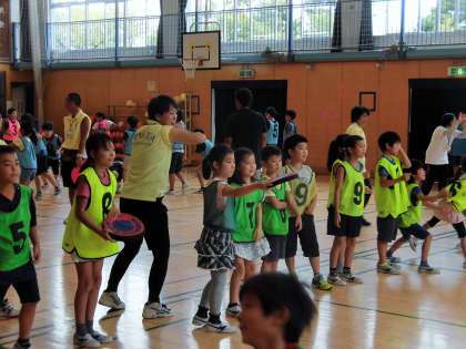 初めて名前を聞くという子どもたちが多く、興味深々な様子で説明を聞いていました。「投げる」、「捕る」練習をしたあと、試合を行いました。スピード感のある試合は迫力満点でした。
