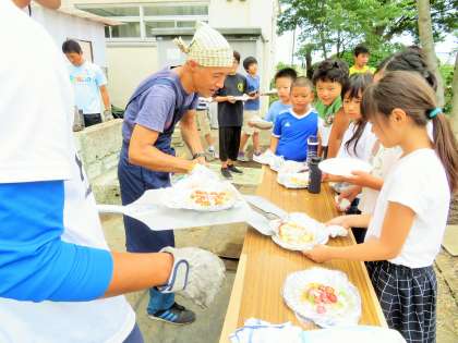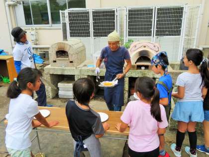早朝から火をおこし、暑い中、ピザ釜で焼いてくださった平林さん、関谷先生、大曽根先生。作り方をわかりやすく教えてくださり、作るお手伝いをしてくださった保護者の方々、本当にありがとうございました。