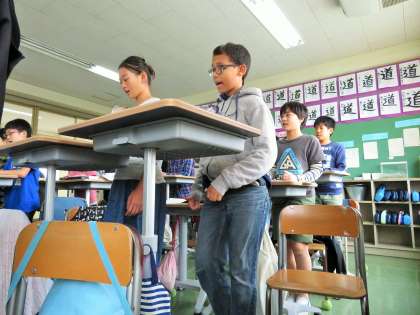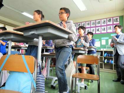 昨年度、5年3組が10月23日から使用していたスタンディングデスクについて、朝日小学生新聞の取材が入りました。