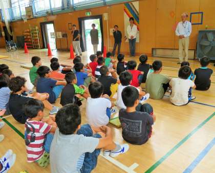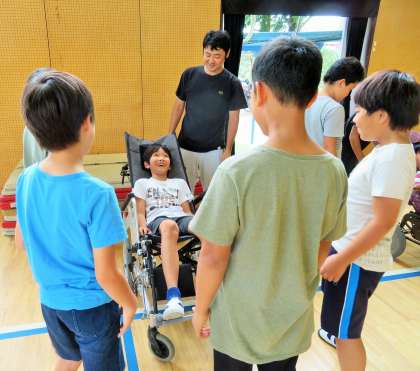 今日は4年生が総合的な学習の時間に、車椅子&アイマスク体験を行いました。