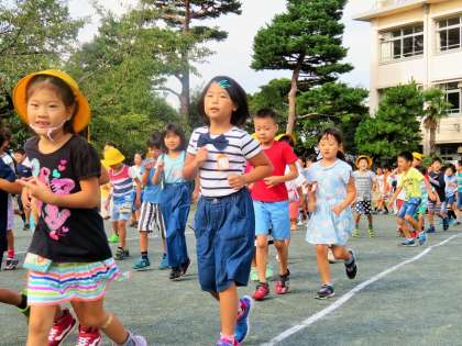 軽快な「朝ラン」の音楽が流れると、それに合わせてリズムよく走っています。