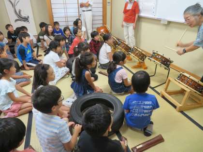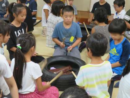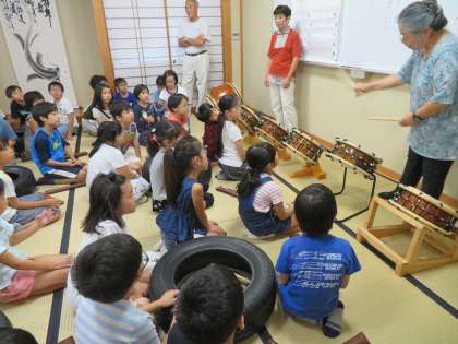 第2回目の練習は、太鼓のたたき方を中心に、丁寧に教えていただきました。