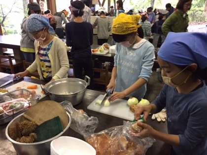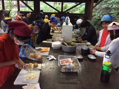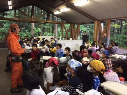 飯ごう炊さんが始まりました。カレーライス作りの説明を聞きました。