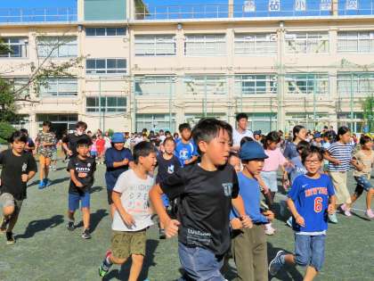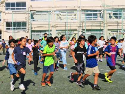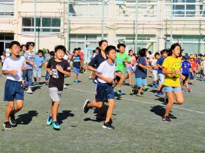 朝ランニングをすることで、脳も活性化され、授業での集中力もアップします。子どもたちは、音楽のリズムに合わせてぐんぐん走っていました。