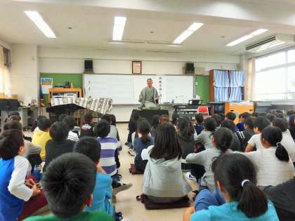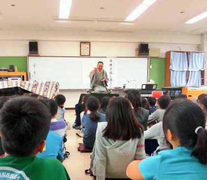 その後、高座に上がっていただき、落語「時そば」を見せていただきました。子どもたちは、たくさん笑い、落語の面白さを知り、とても有意義なひとときになりました。