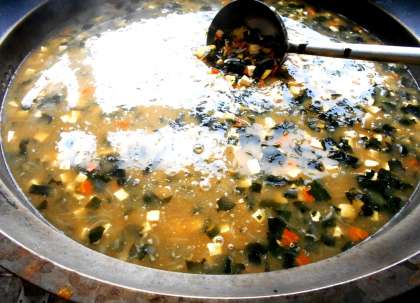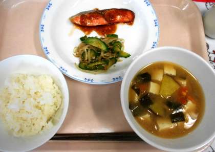 今日の汁物は、旬のさつまいもを使ったみそ汁です。さつまいもや玉ねぎの甘みのわかるやさしい味に仕上がりました。