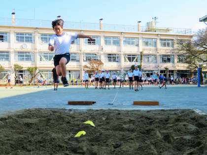 写真は、走り幅跳びの様子です。