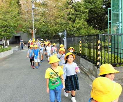 2年生は「町たんけん」に出かけました。生活科「わたしの町だいすき」の学習で、町のことをよく知るため、地域を探検してきました。先週は、成育医療センター、大蔵運動場方面に行き、地域の公共施設やバス停、標識や点字等の様子を見学してきました。