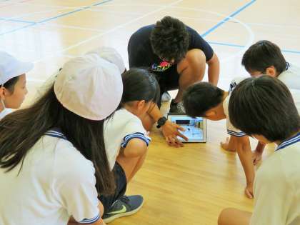 自分たちの映像をスローで見ながら、よりよいフォームを研究しています。