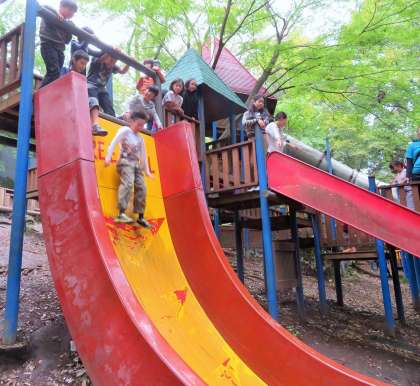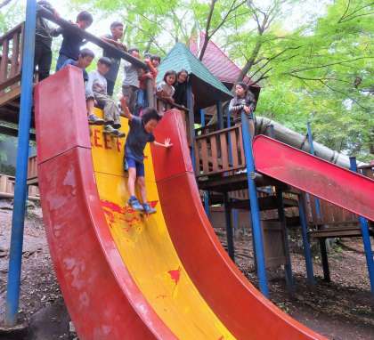 子どもたちは、豊かな自然の風を感じながら、時に真剣に、時に遊び感覚で、様々なアスレチックに挑戦し、達成感を感じていました。大きなケガなく「楽しかったー!」と言って帰ってくることができました。