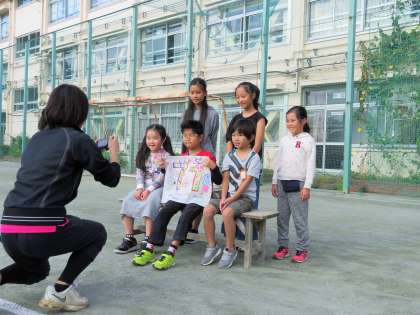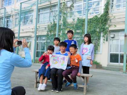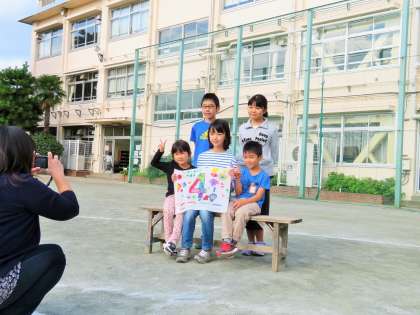 今朝は「なかよし班」の記念写真撮影がありました。砧小学校の特色ある活動の一つとして、この1年間、一つの班に1年生から6年生までが入って縦割りの集団で遊んだり、給食を食べたりしています。
