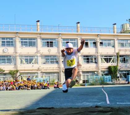 写真は、走り幅跳びの様子です。