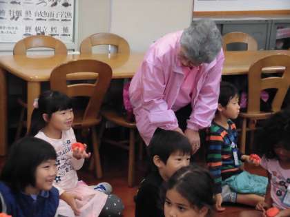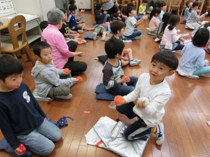 いよいよお手玉の練習です。会の方々が、丁寧に教えてくださいました。