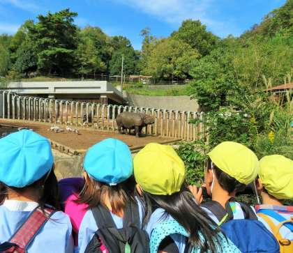 今日は、砧幼稚園のバス遠足で「多摩動物公園」です。子どもたちには、絶好の遠足日和のプレゼントが待っていました。