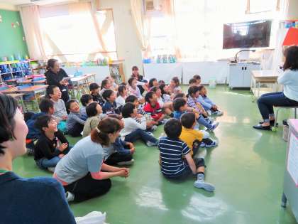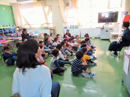 今日の1・2年生の始業前は朝読書で、保護者の皆さんが読み聞かせをしてくださっています。皆さんの上手な話術に、子どもたちは惹きこまれていました。