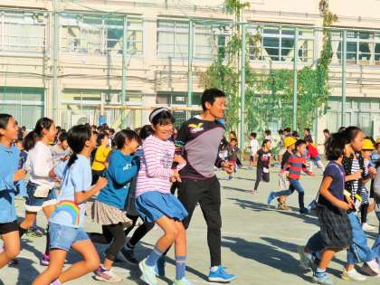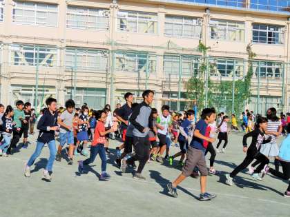 毎朝、多くの先生が一緒に走っています。朝遊び・朝ランニングをして、今週も元気いっぱいのスタートです!