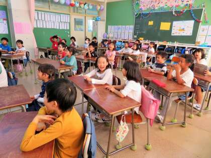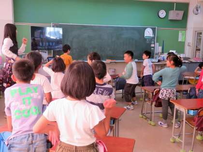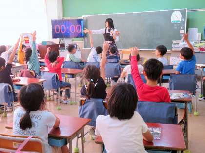 後半には、今日習った単語を練習しながら「進化ゲーム」をしました。子どもたちは、新しいハロウィンの単語を使いながらじゃんけんをし、笑顔でがんばっていました!