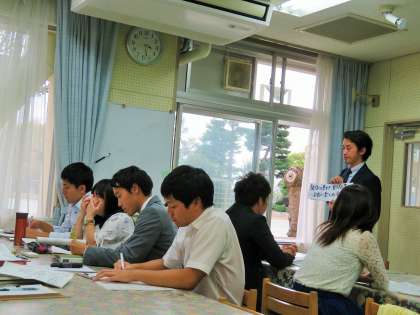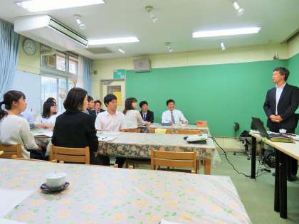 子どもたちの下校後は、実践した授業をもとに協議し、講師の先生からご指導をいただきました。講師の先生からは、「子どもたち一人一人が一生懸命で気持ちがいい。」「楽しめる雰囲気づくりをしていますね。武蔵野の学校にも伝えたい。」と褒めていただきました。