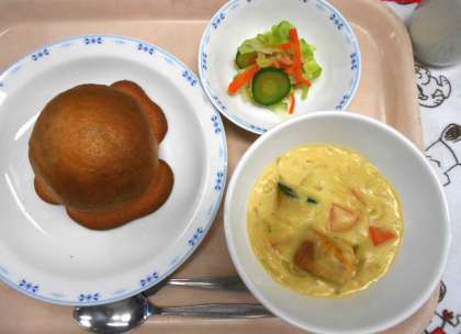 今日は、ハロウィンにちなんで、パンプキンシチューを作りました。どの学級も、よく食べていました。