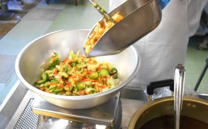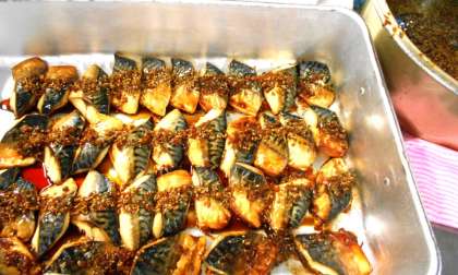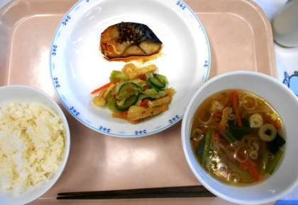今日の主菜は、<魚のねぎソース>です。焼いたさばの上にねぎやしょうが・にんにくが香るソースをかけました。白いご飯のすすむ一品で、どの学級もよく食べていました。