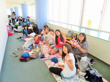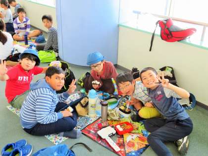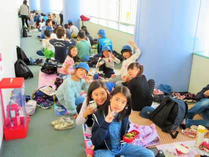 有明水再生センターに併設されている、スポーツセンターの展望フロアーで、待ちに待った昼食です。
