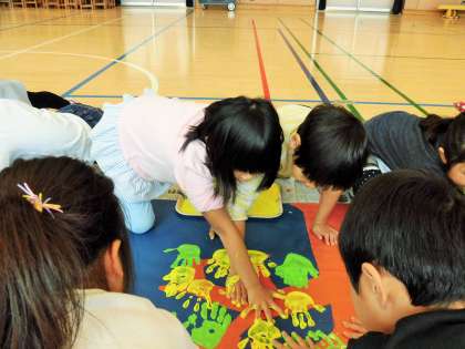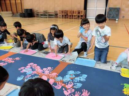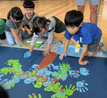 楽しくて、つい、やり過ぎてしまう子がいるかと思いましたが、出来上がった作品は、適度に幹を残し、バランスよく花の咲いた6本の木となっていました!