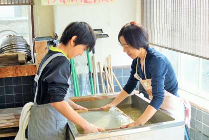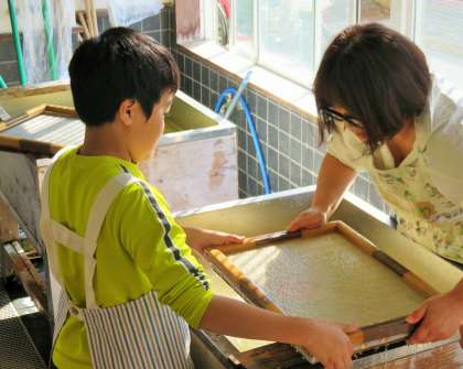 校章をすかして入れる証書の紙を丁寧に作成していきます。