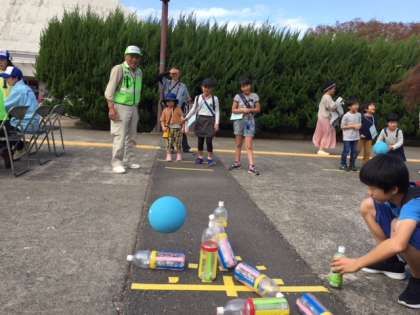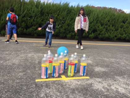 写真は、ペットボトルボウリング、ストラックアウトの様子です。