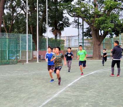 砧小学校、明正小学校、山野小学校から、男子が13名、女子が17名集まりましたので、2回の選考会を実施して、男女8名(補欠2名を含む)ずつを「選抜チーム」として選考します。子どもたちは真剣そのもので、やる気いっぱいです。