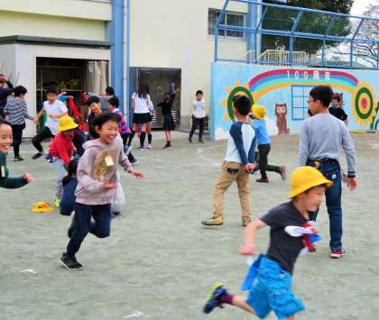 6年生は、どの子も楽しく遊べるように考えています。遊びの終了後には、班ごとに振り返りをしています。