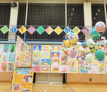 1年生、2年生、3年生、4年生、5年生、6年生、そして先生たちの7つの力が合わさった作品が展示されています。
