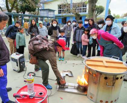 バーナーの使い方、仮設トイレの設置、井戸水を使用しての流し方等を確認しました。