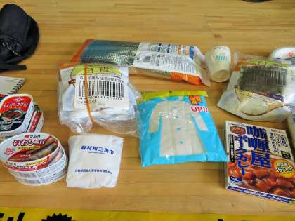 常備品、常備食、LED投光器について説明していただきました。