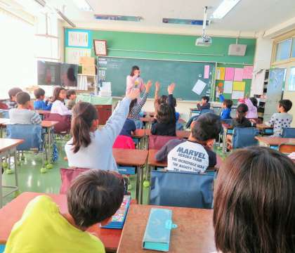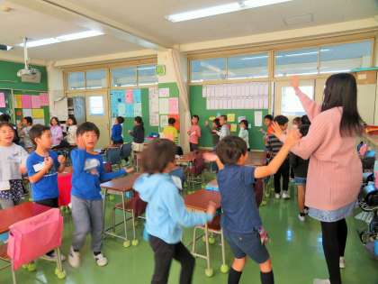 今日は、1・2年生の英語活動がありました。ミシェル先生と担任の先生との授業ですが、牛や馬など牧場の動物を英語で表す学習です。英語で動物の鳴き声も勉強しました。